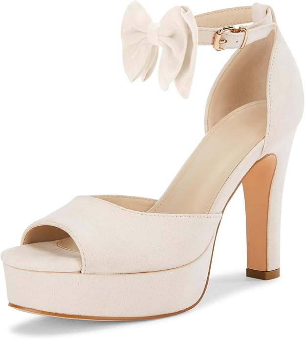 Womens Peep Toe Chunky Heels High Platform Bow Sandals Dress Shoes Ankle Strap Summer Pumps