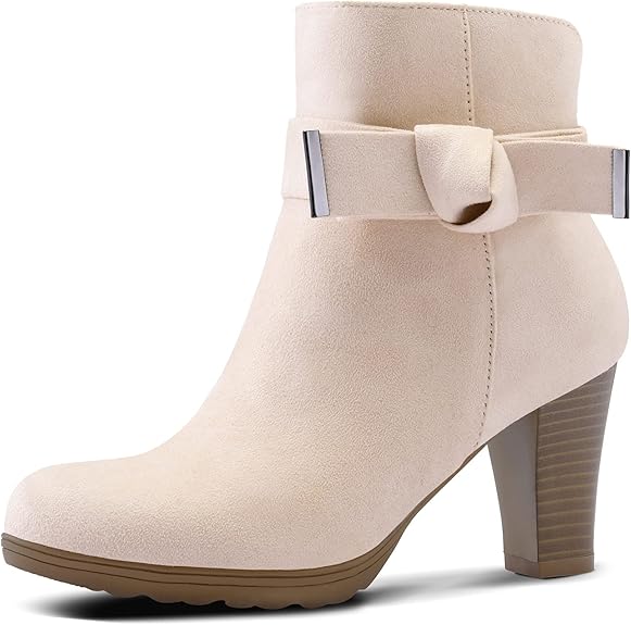 Women's Booties with Heel, Chunky Stacked Heel Zipper Ankle Boots for Ladies