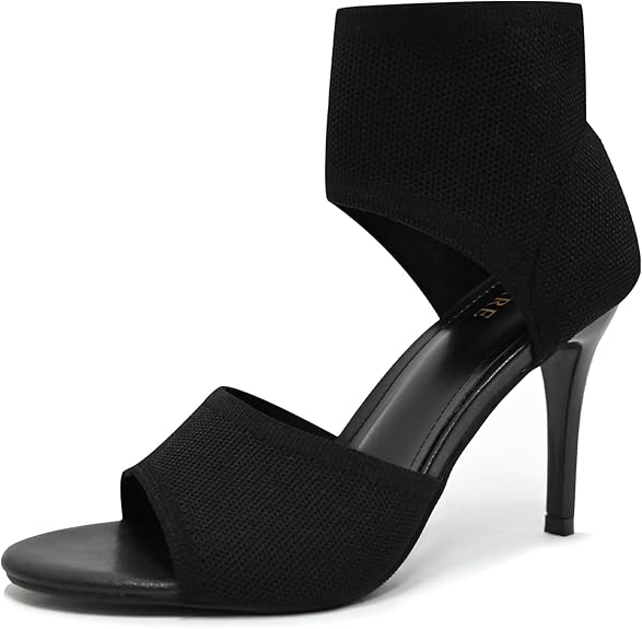 Peep Toe Heels for Women Sexy 3 Inches Stiletto High Heels for Women Dressy Slip On Comfortable Wide Stretchy Heels Knit Open