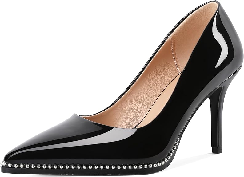Women's High Heels Pumps Closed Pointed Toe Stiletto Heels Comfortable Slip on Stiletto Pumps 3.5 Inch High Heels for Ladies
