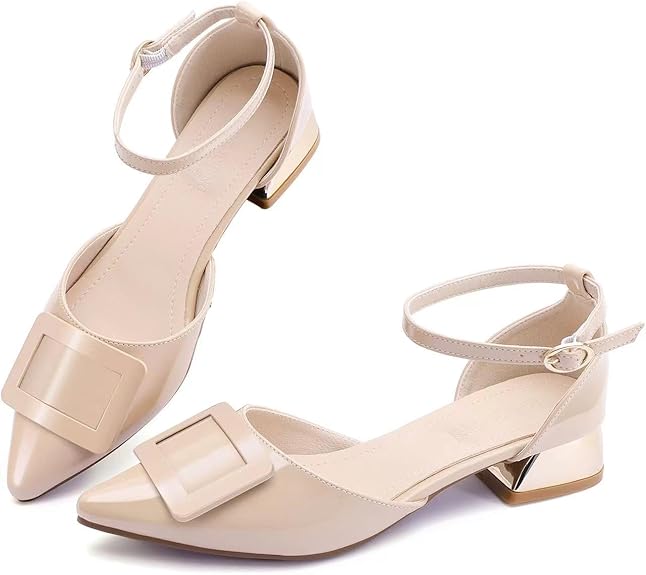 Women's Closed Toe Wedding Low Heels Pumps Adjustable Strap Pointed Toe Pumps High Heeled Prom Dress Shoes