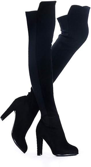 Women Stretch Suede Chunky Heel Over The Knee Boots Thigh High for Women